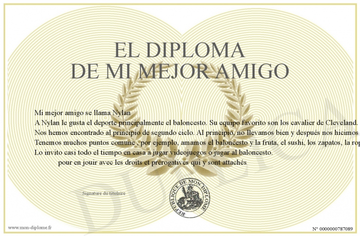 Envoyez par email votre El diploma de mi mejor amigo personalisé