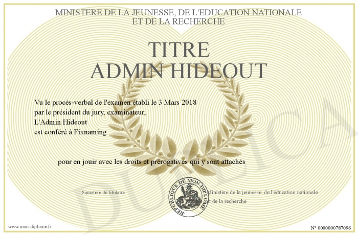 Envoyez par email votre titre Admin Hideout personalisé