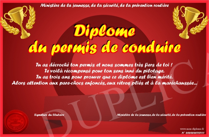 Envoyez par email votre Diplôme du permis de conduire personalisé
