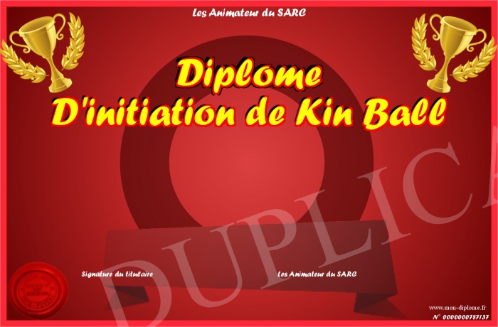 Envoyez par email votre Diplôme D'initiation de Kin Ball personalisé