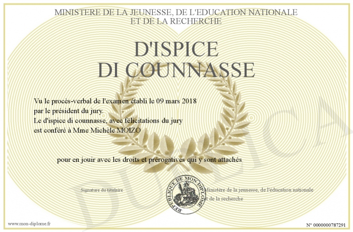 Envoyez par email votre d'ispice di counnasse personalisé