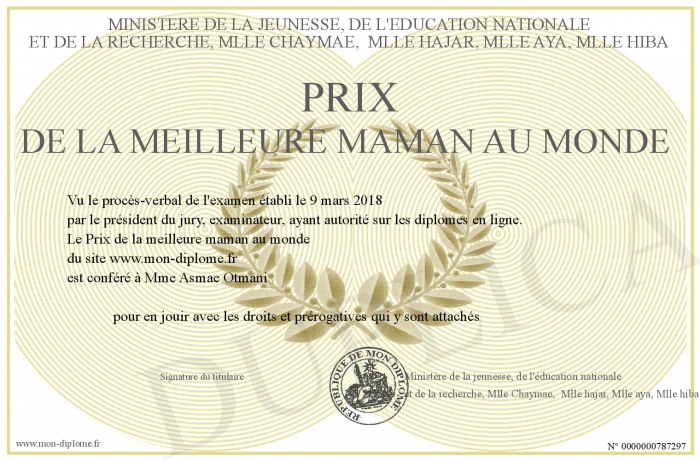 Envoyez par email votre Prix de la meilleure maman au monde personalisé