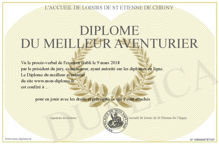 Envoyez par email votre Diplôme du meilleur aventurier personalisé