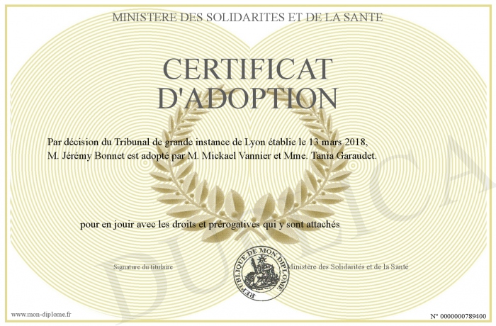 Envoyez par email votre Certificat d'adoption personalisé