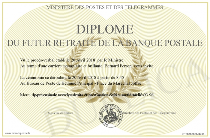 Envoyez par email votre Diplôme du Futur Retraité de La Banque Postale personalisé