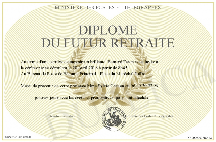 Envoyez par email votre Diplôme du Futur Retraité personalisé