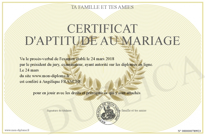 Envoyez par email votre certificat d'aptitude au mariage personalisé