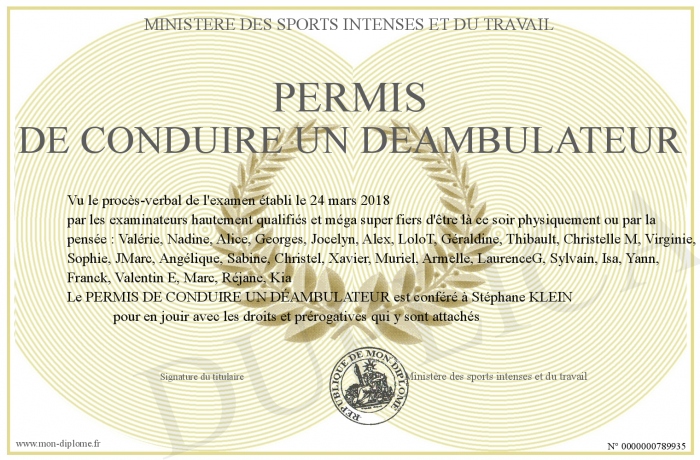 Envoyez par email votre Permis de Conduire un Déambulateur personalisé