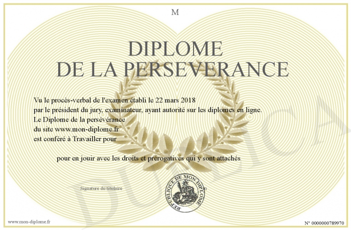 Envoyez par email votre Diplôme de la persévérance personalisé