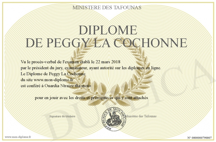 Envoyez par email votre Diplôme de Peggy La Cochonne personalisé