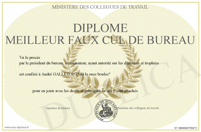 Envoyez par email votre Diplôme meilleur faux cul de bureau personalisé
