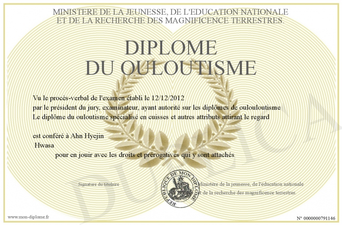 Envoyez par email votre diplôme du ouloutisme personalisé