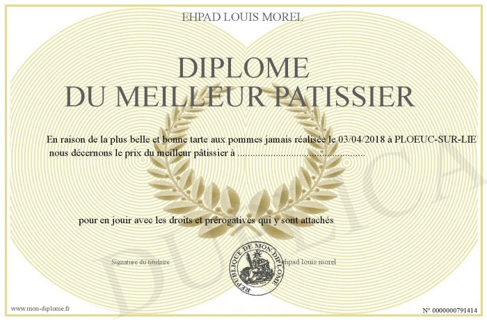 Envoyez par email votre Diplôme du meilleur patissier personalisé