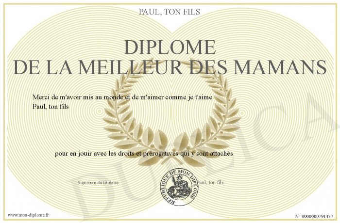 Envoyez par email votre diplôme de la meilleur des mamans personalisé