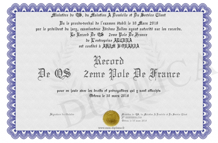 Envoyez par email votre Record De QS 2eme Pole De France personalisé