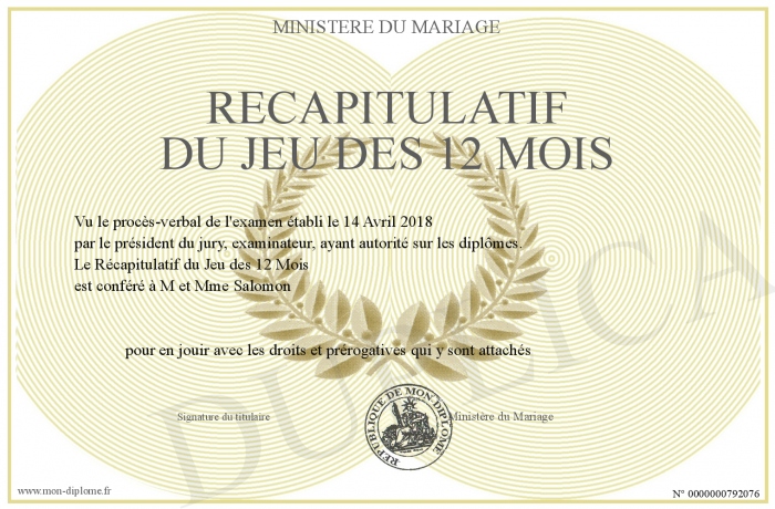 Envoyez par email votre Récapitulatif du Jeu des 12 Mois personalisé