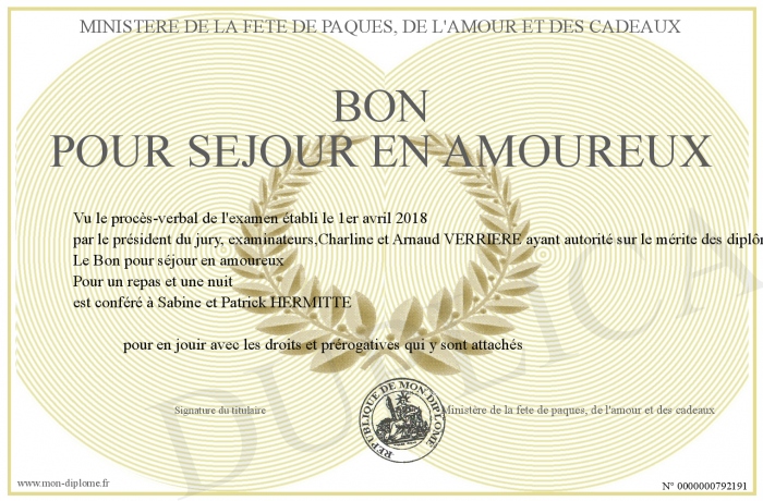 Envoyez par email votre Bon pour séjour en amoureux personalisé