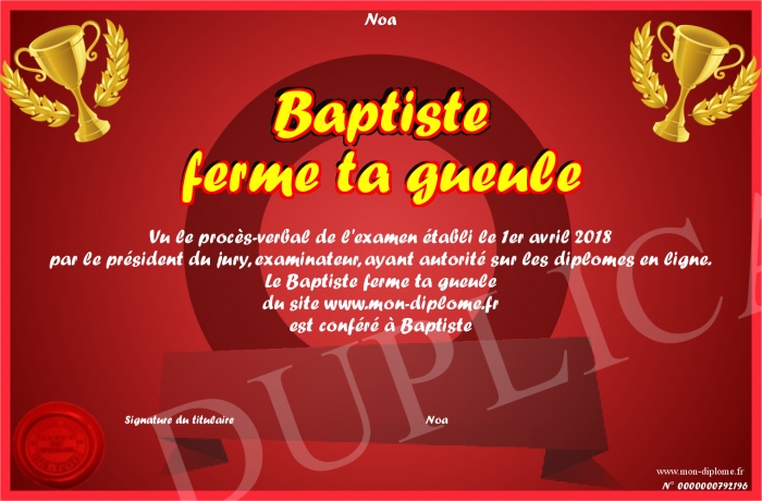 Envoyez par email votre Baptiste ferme ta gueule personalisé