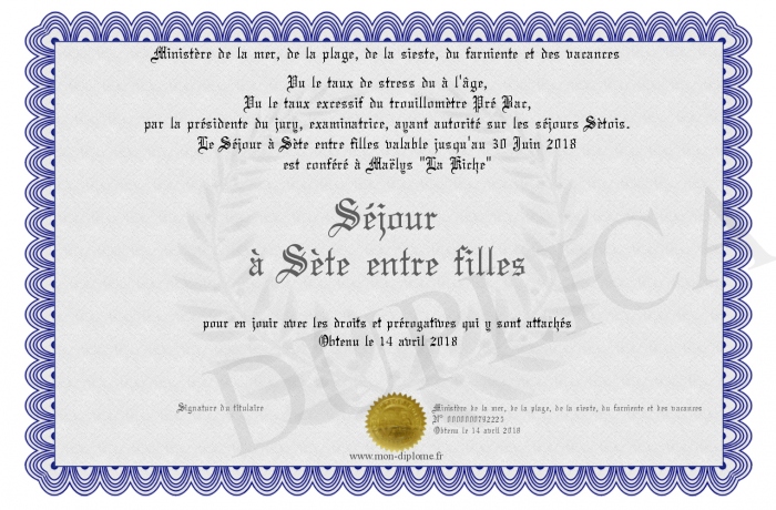 Envoyez par email votre Séjour à Sète entre filles personalisé