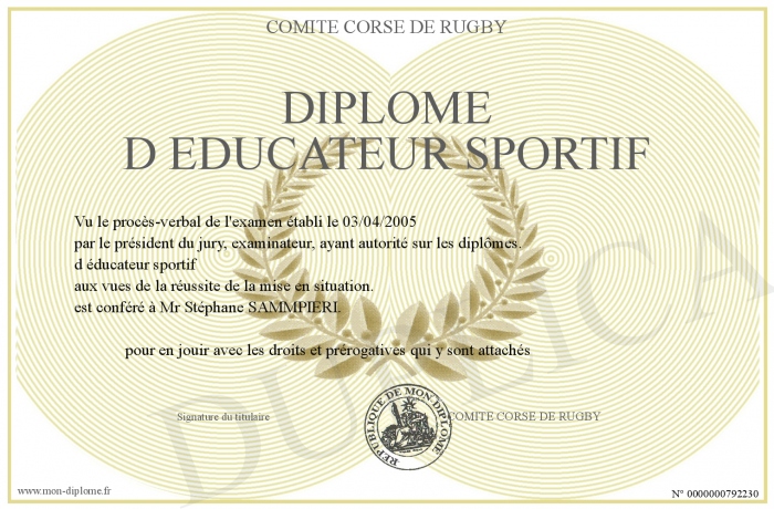Envoyez par email votre Diplôme d éducateur sportif personalisé