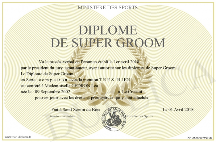 Envoyez par email votre Diplôme de Super Groom personalisé