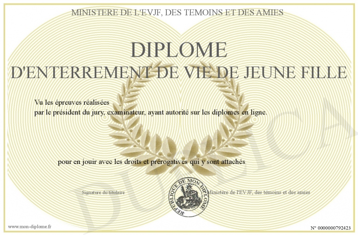 Envoyez par email votre Diplôme d'enterrement de vie de jeune fille personalisé