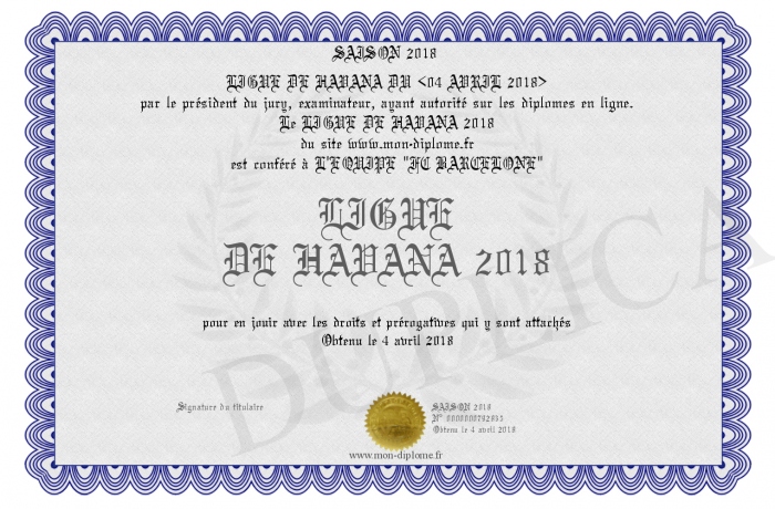 Envoyez par email votre LIGUE DE HAVANA 2018 personalisé
