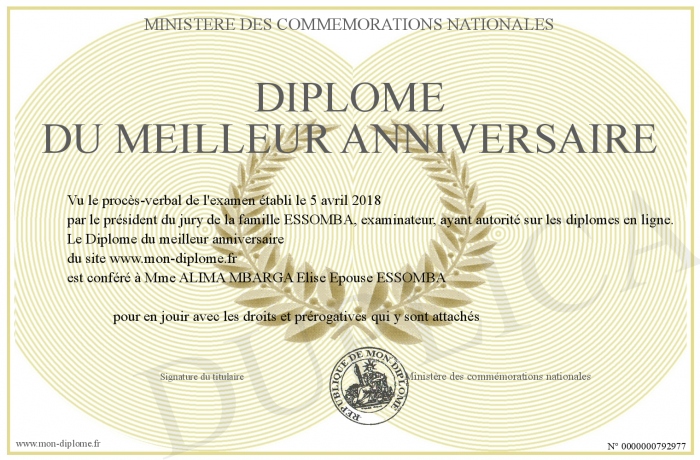 Envoyez par email votre Diplôme du meilleur anniversaire personalisé