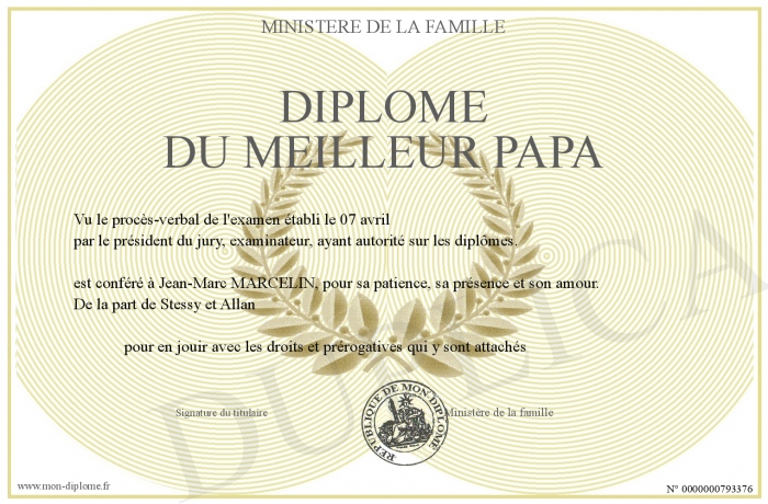 Envoyez par email votre Diplôme du meilleur papa personalisé