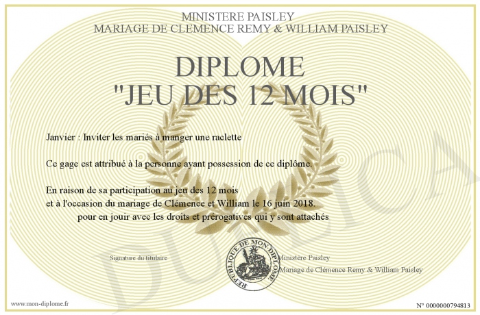 Envoyez par email votre Diplôme -Jeu des 12 mois- personalisé