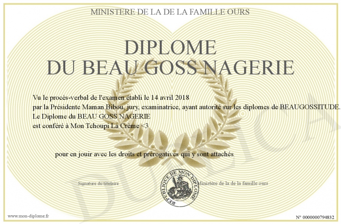 Envoyez par email votre Diplôme du BEAU GOSS NAGERIE personalisé