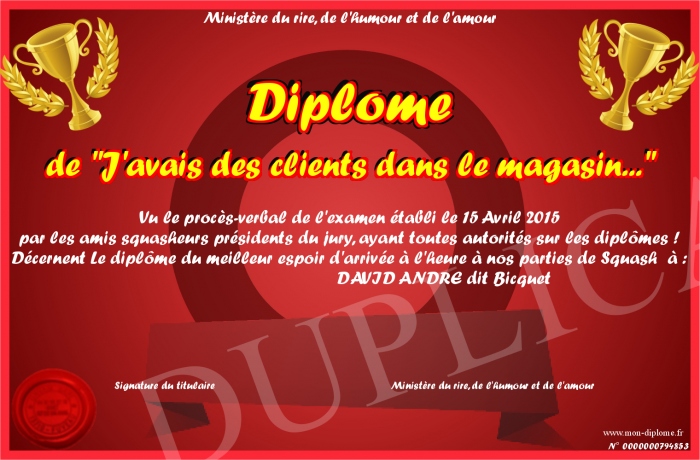 Envoyez par email votre Diplome de -J'avais des clients dans le magasin...- personalisé