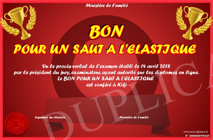 Envoyez par email votre BON POUR UN SAUT A L'ELASTIQUE personalisé