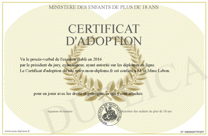 Envoyez par email votre Certificat d'adoption personalisé