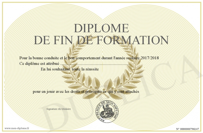 Envoyez par email votre Diplôme de fin de formation personalisé