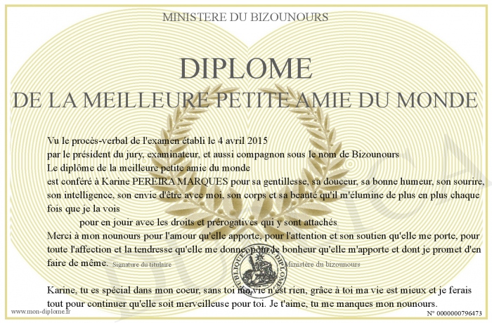 Envoyez par email votre Diplôme de la meilleure petite amie du monde personalisé