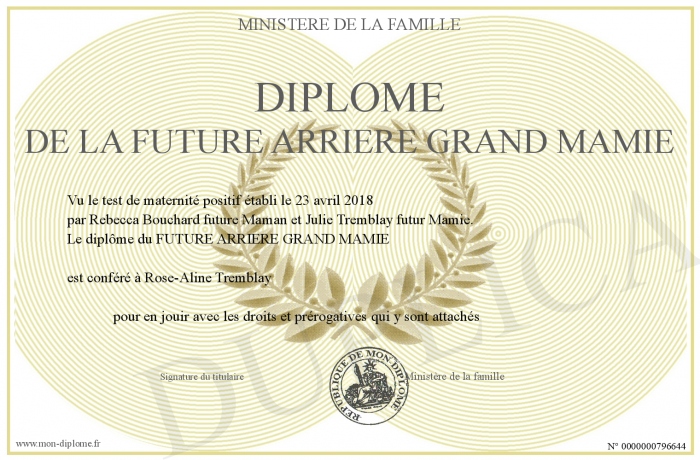Envoyez par email votre Diplôme de la future arrière grand mamie personalisé