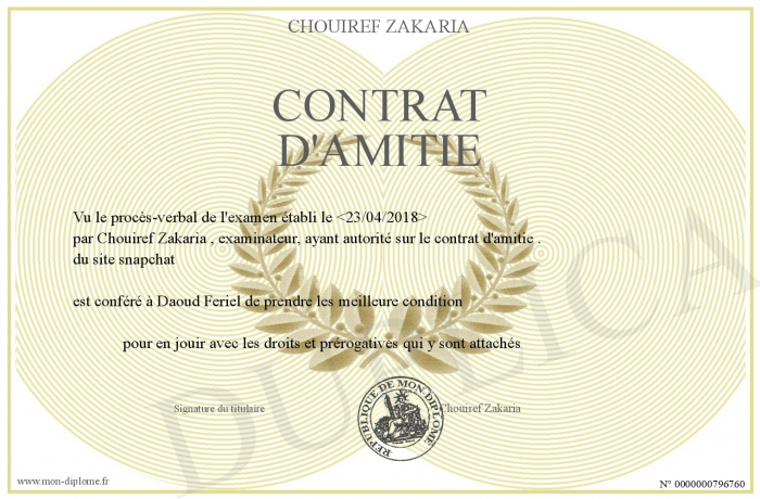 Envoyez par email votre contrat d'amitie personalisé