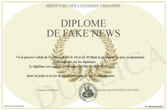 Envoyez par email votre Diplôme de FAKE NEWS personalisé