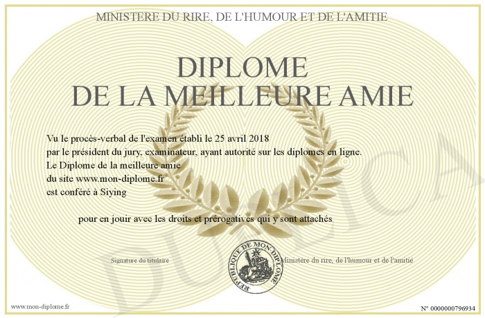 Envoyez par email votre Diplome de la meilleure amie personalisé