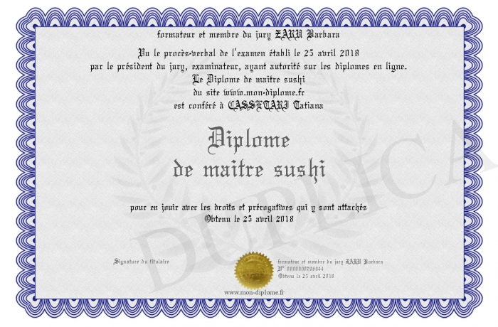 • Diplôme de maitre sushi