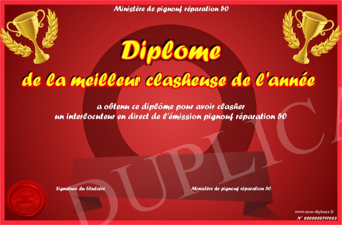Envoyez par email votre Diplôme de la meilleur clasheuse de l'année personalisé