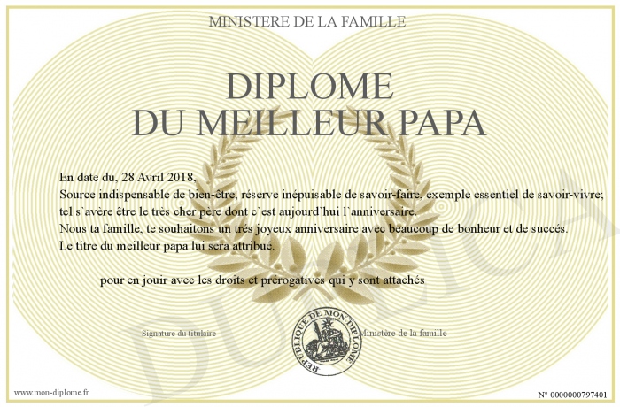 Envoyez par email votre Diplôme du meilleur papa personalisé