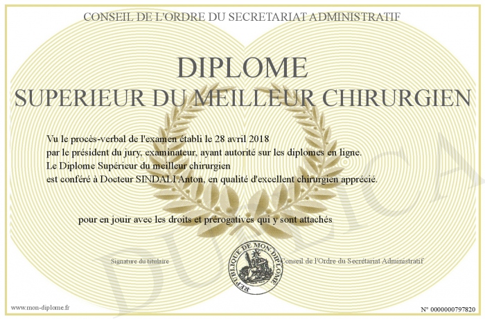 Envoyez par email votre Diplôme Supérieur du meilleur chirurgien personalisé