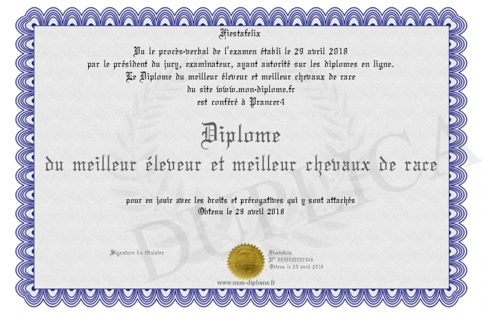 Envoyez par email votre Diplôme du meilleur éleveur et meilleur chevaux de race personalisé