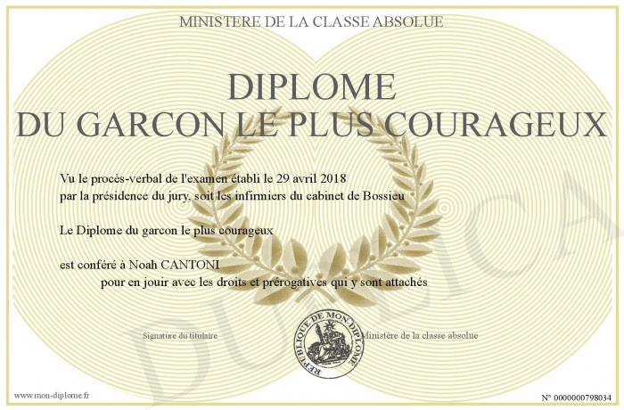 Envoyez par email votre Diplôme du garcon le plus courageux personalisé