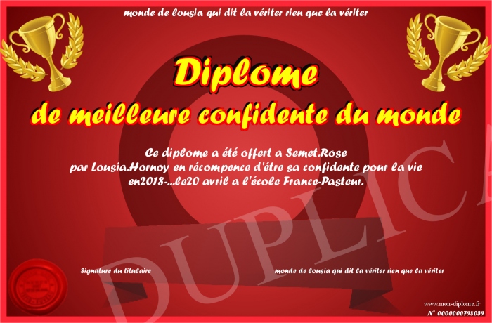 Envoyez par email votre Diplôme de meilleure confidente du monde personalisé
