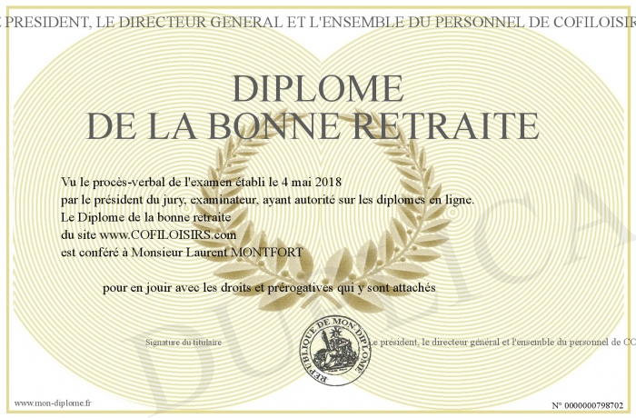 Envoyez par email votre Diplôme de la bonne retraite personalisé