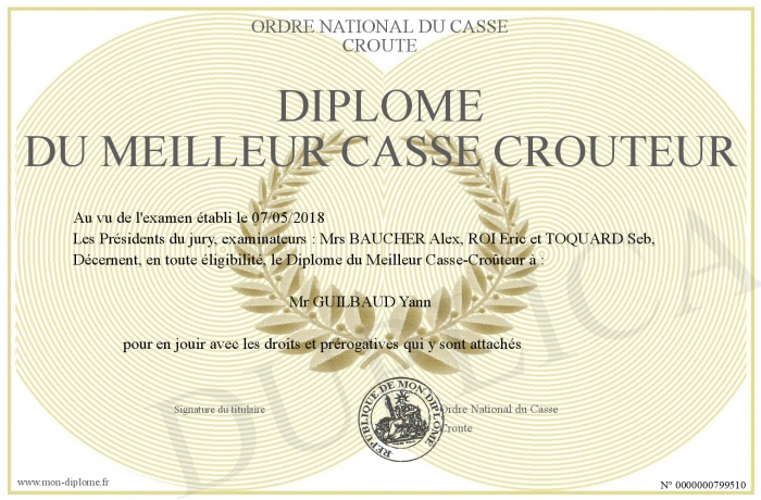 Envoyez par email votre Diplôme du Meilleur Casse Crouteur personalisé