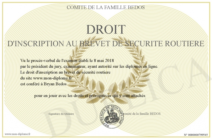 Envoyez par email votre droit d'inscription au brevet de sécurité routiere personalisé